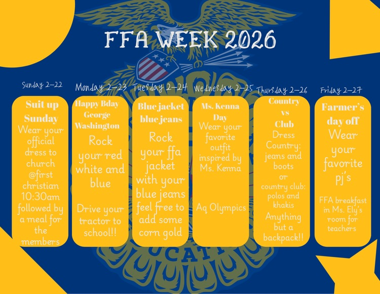 Richland FFA will be celebrating National FFA Week next week. Here are the spirit days for the week.